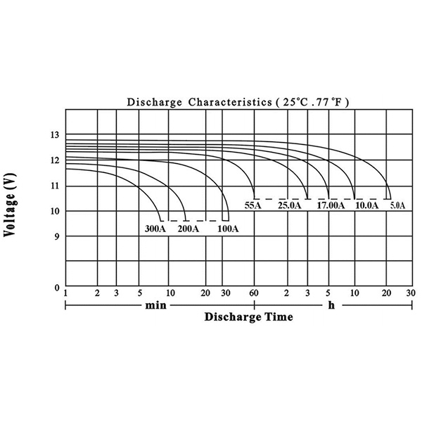 | Capacity 25°C (77°F) | 10 Hour Rate (10A) | 100AH |